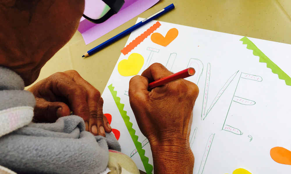 “Write your name.” I instruct the ten ladies at our weekly activity.