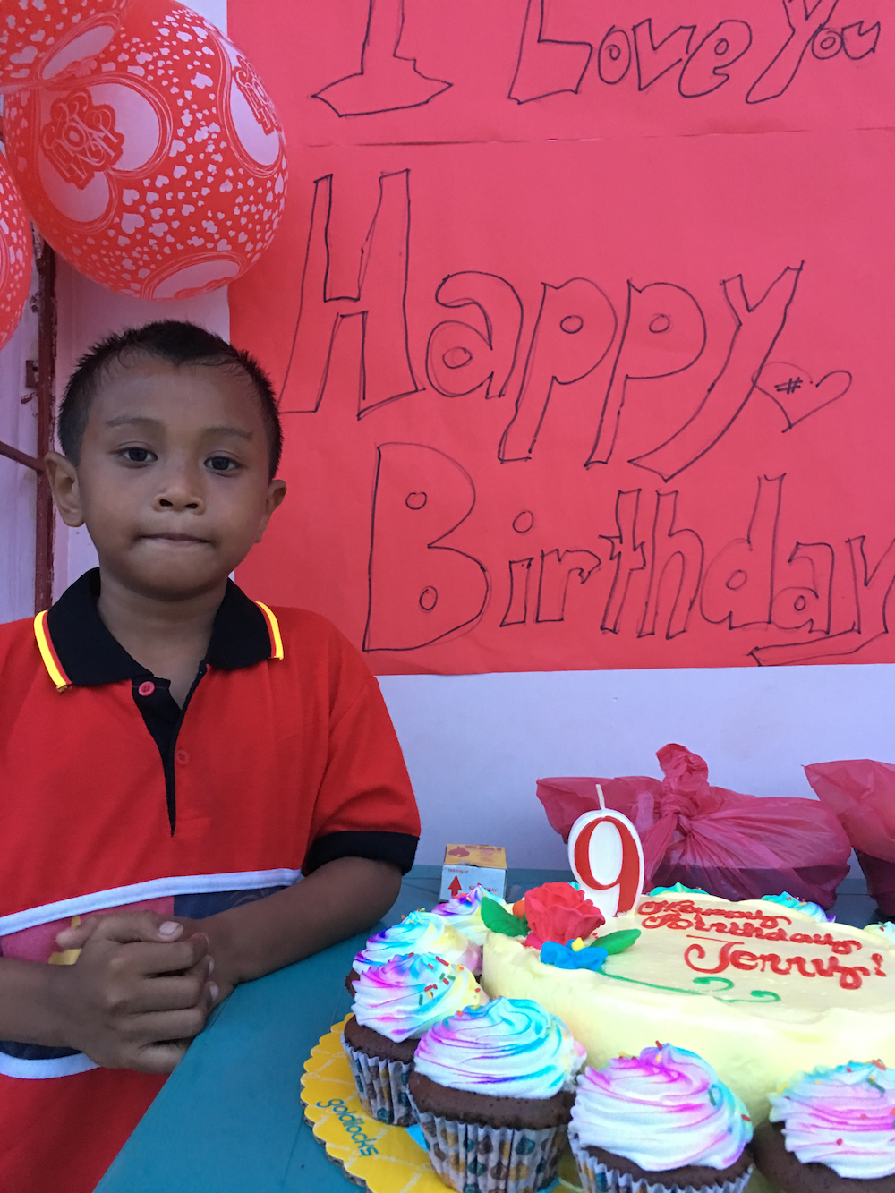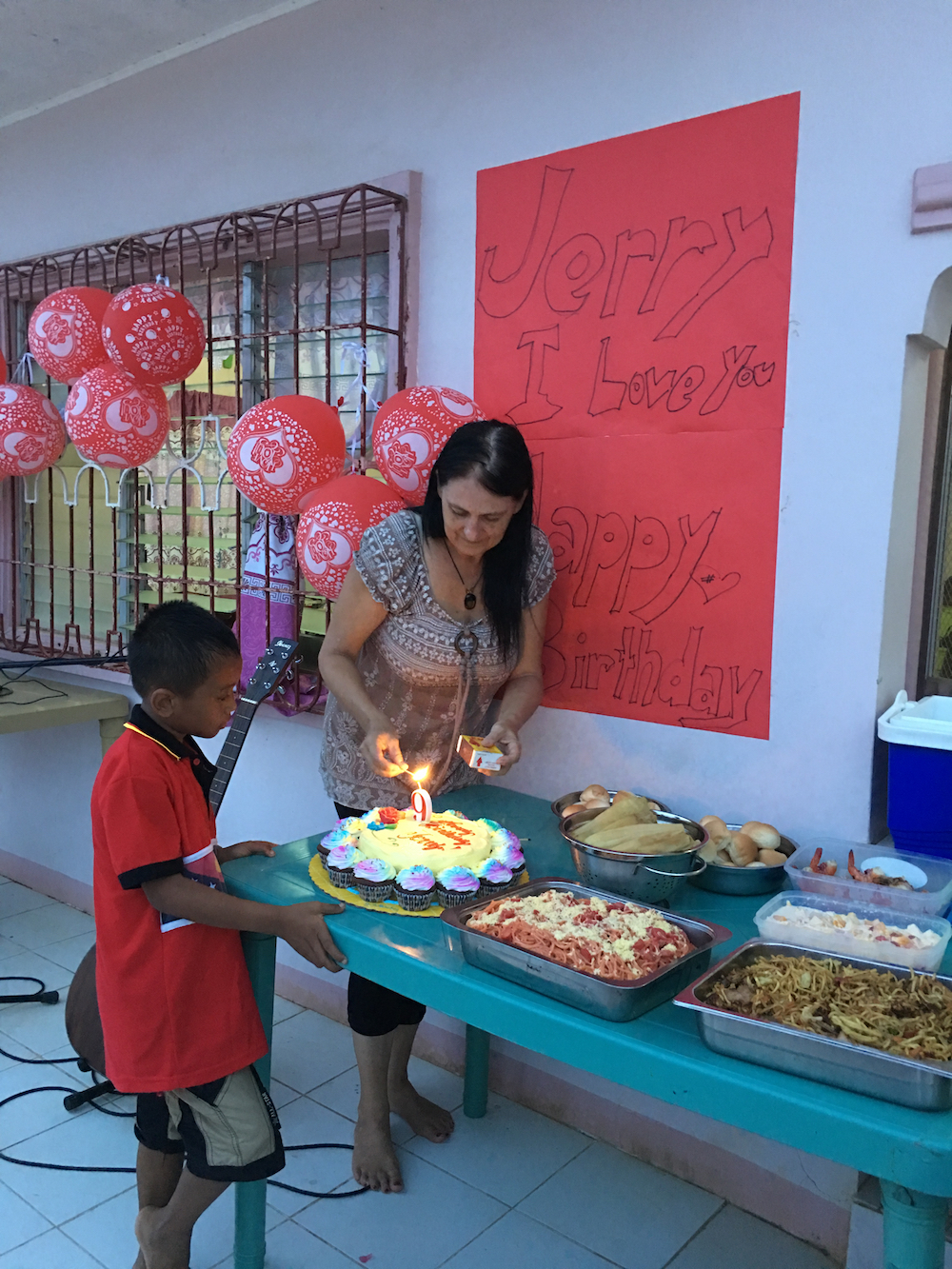 tonight we had yet another blackout so we ate our dinner together by candlelight and when the power came back he blew out the big candles and sang ‘happy birthday jerry’ to himself three or four times. very cute.
