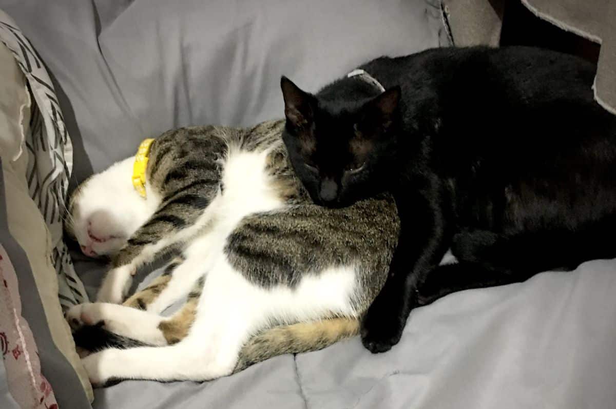 After a rocky start to their relationship our two cats Midnight and Sunny have become best friends. It’s so cute when they go out on a hunt or take a nap together — or meow at each other through the cracks of the door if they are accidentally separated.