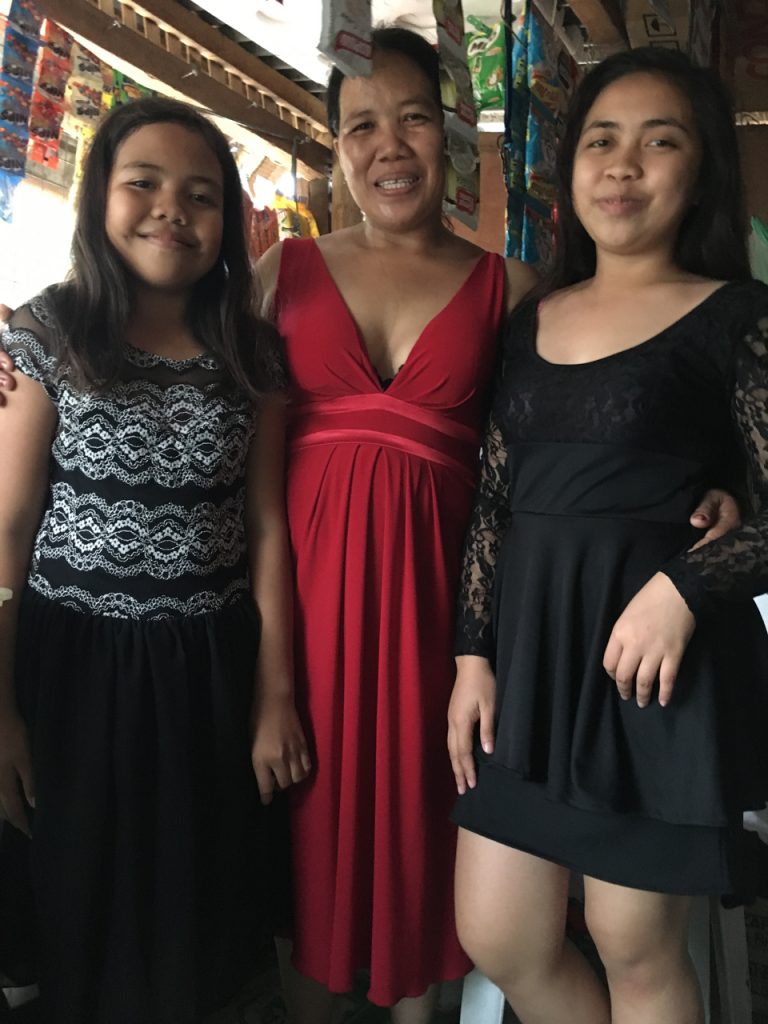 Back in September/October my mother had asked me to return to Australia following dad’s heart attack. As a thank you, she bought a dress for all the ladies and their kids who helped take care of Jerry while I was away. (photos below of the ladies receiving their dresses in late October).