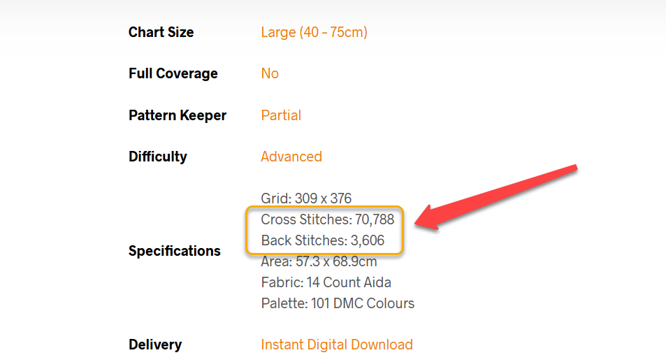 I provide detailed specifications in the product listing of every pattern. You’ll find this in the Additional Information tab, located beneath the product image gallery.