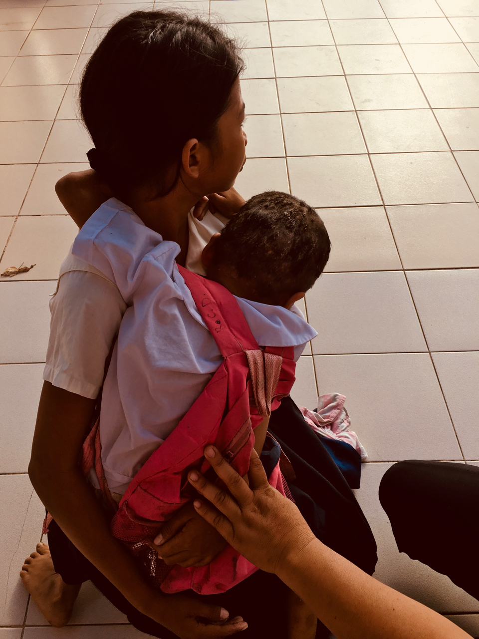 She let me untie the thick fabric and t-shirt she’d wrapped around her head. My heart melted when she gave a faint smile as I gently placed one of her ‘Hello Kitty‘ little pink hats onto her damaged head.