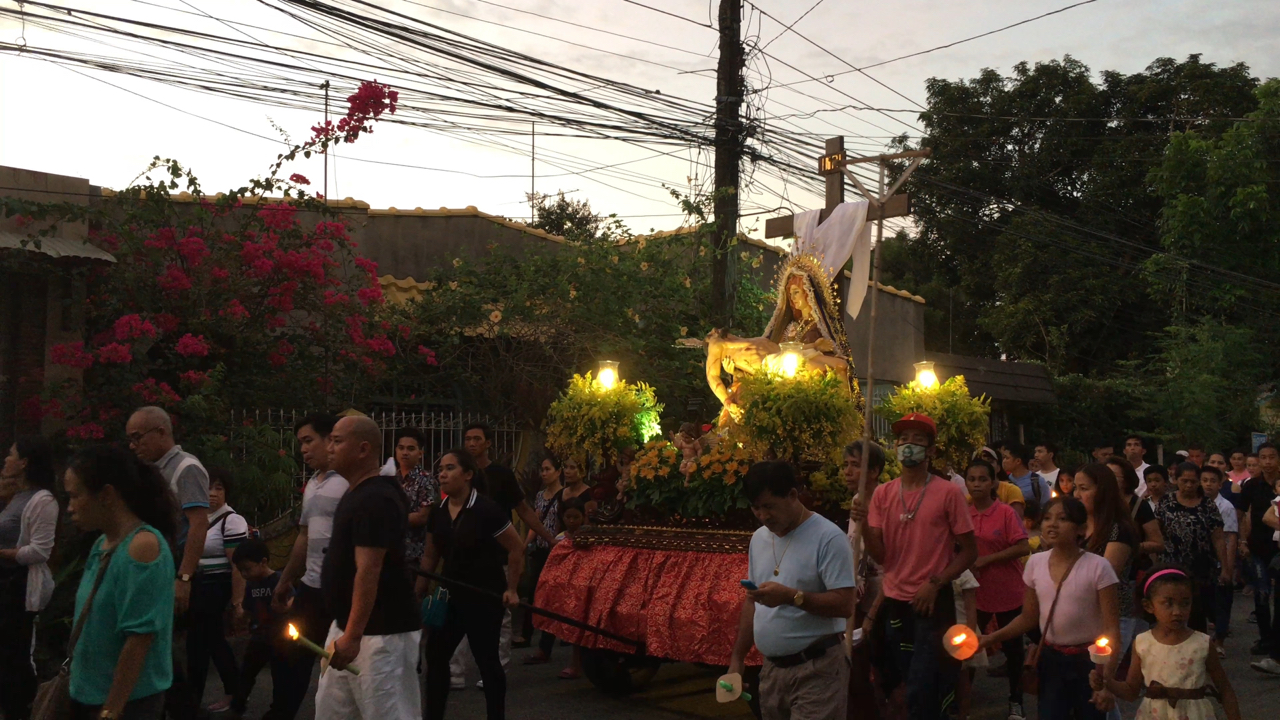 Each float in the procession passes by all fourteen stations of the Cross — recreated on the streets and guarded by the Barangay officials in each local diocese.