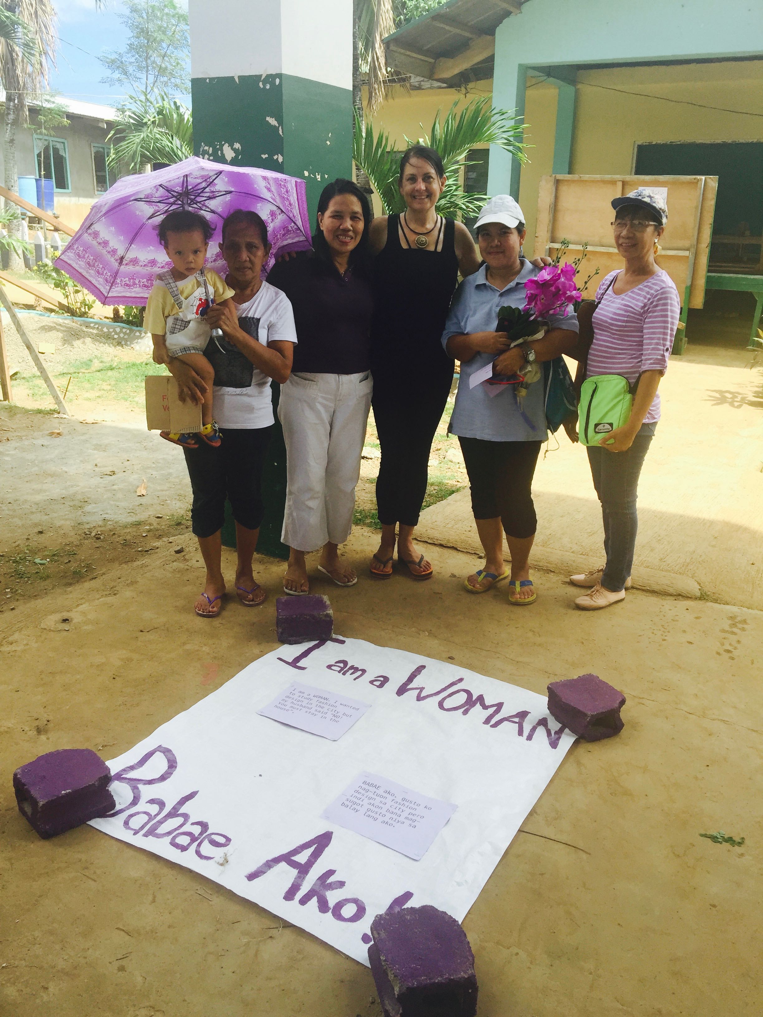 I was originally asked to sing at the event but when I was also invited to prepare a visual presentation I decided instead to feature one of my poems which speaks to domestic violence; Into His Direction. The poem was written after witnessing a horrible incident a Iloilo City last year. Into His Direction was printed on the IWD colour of purple and posted on a support beam at the Estancia Central School (it may still be there). Unexpectedly one of the ladies translated the poem into Tagalog (the national Philippine language) and together we read the poem to the women following the affirmations.