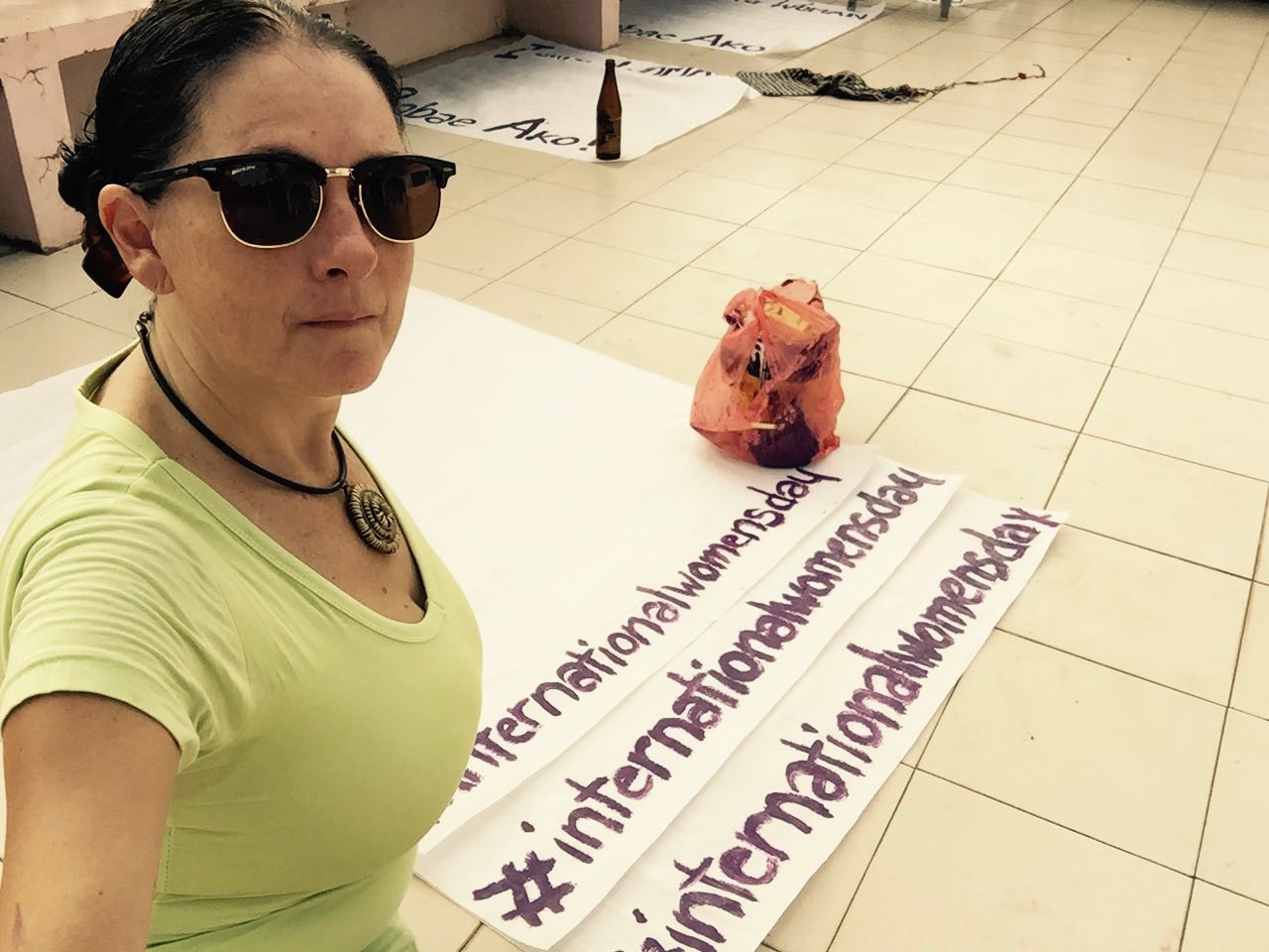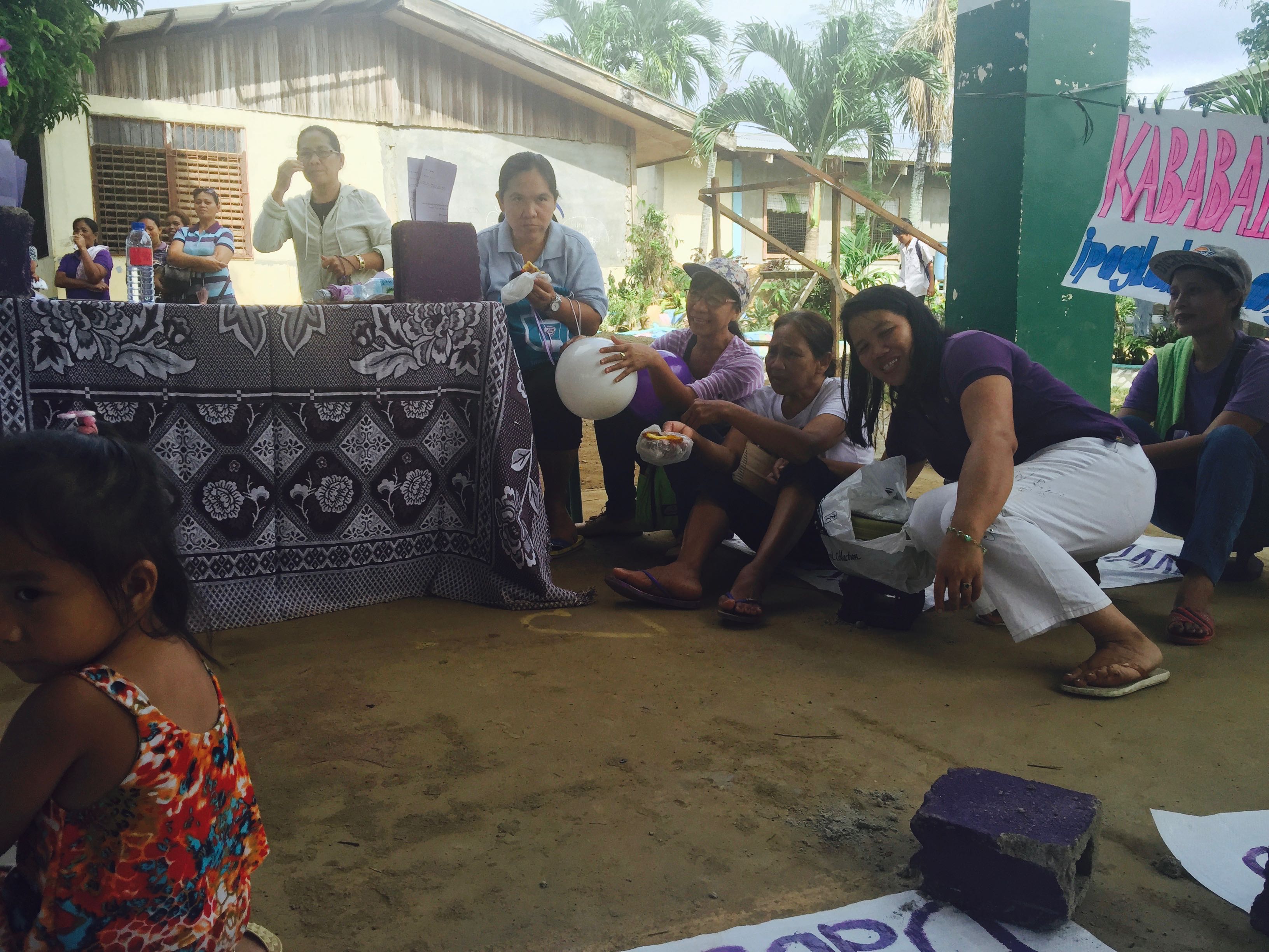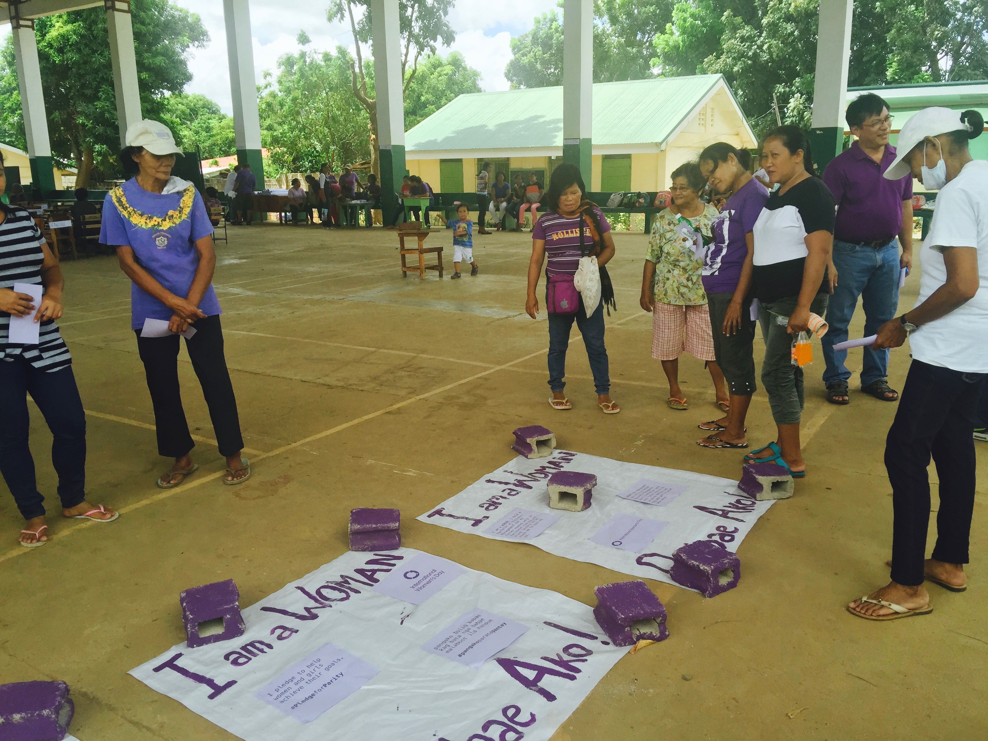 Allocated a space near the entrance to the event, I created a walk-through visual presentation using white tarpaulin, purple paint and lavender bond paper secured with hollow blocks also painted purple. Stapled on micro-stories written in English and the native dialect Hiligaynon were the feature along with the International Women’s Day logos.