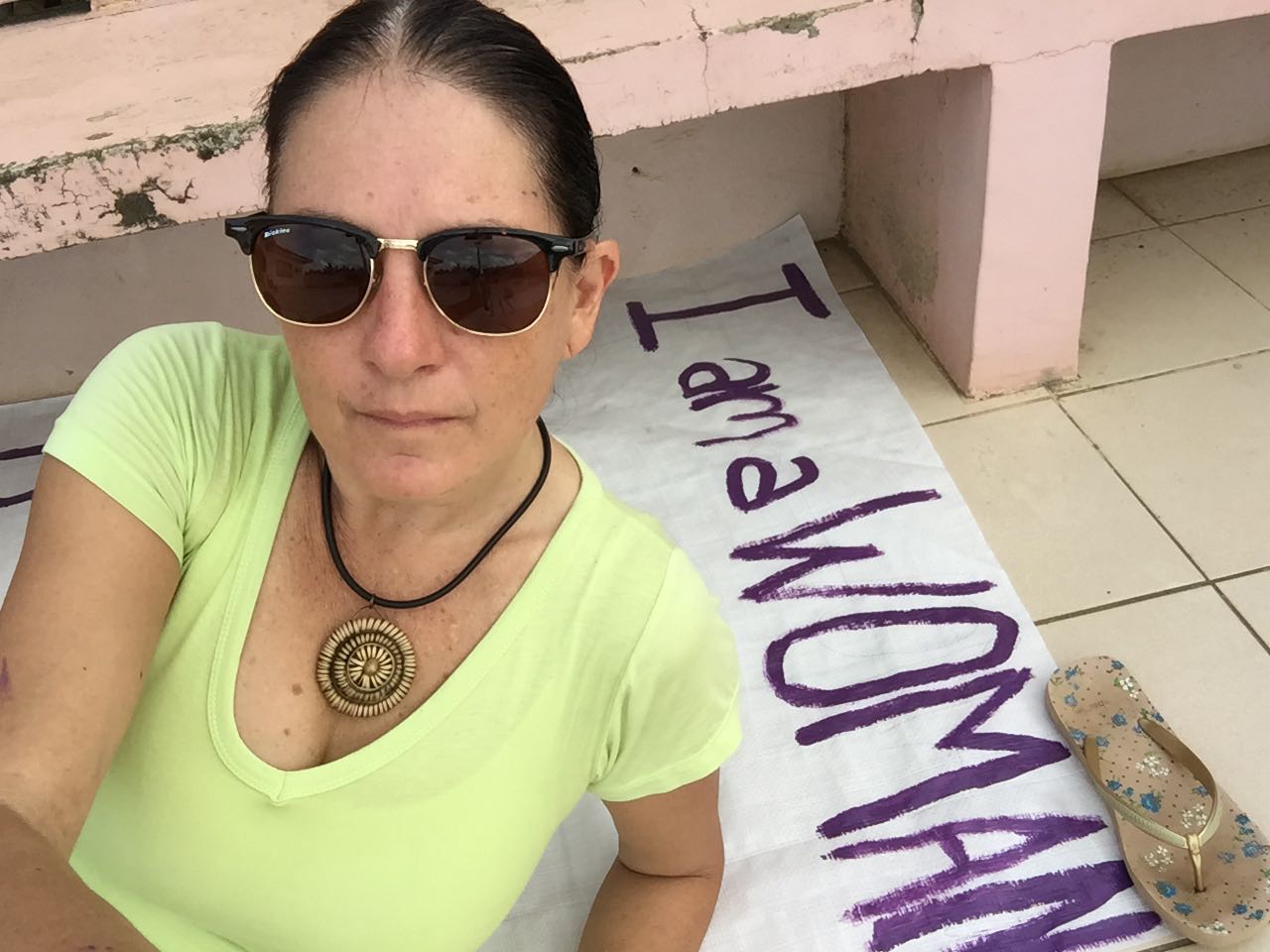 Later in the afternoon I gave the tarpaulins to add to the banners the women were carrying through the streets of Estancia during their annual women’s empowerment march. Yes I marched too handing out the little purple pamphlets to school girls along the roadside with Jerry at my side holding my hand.