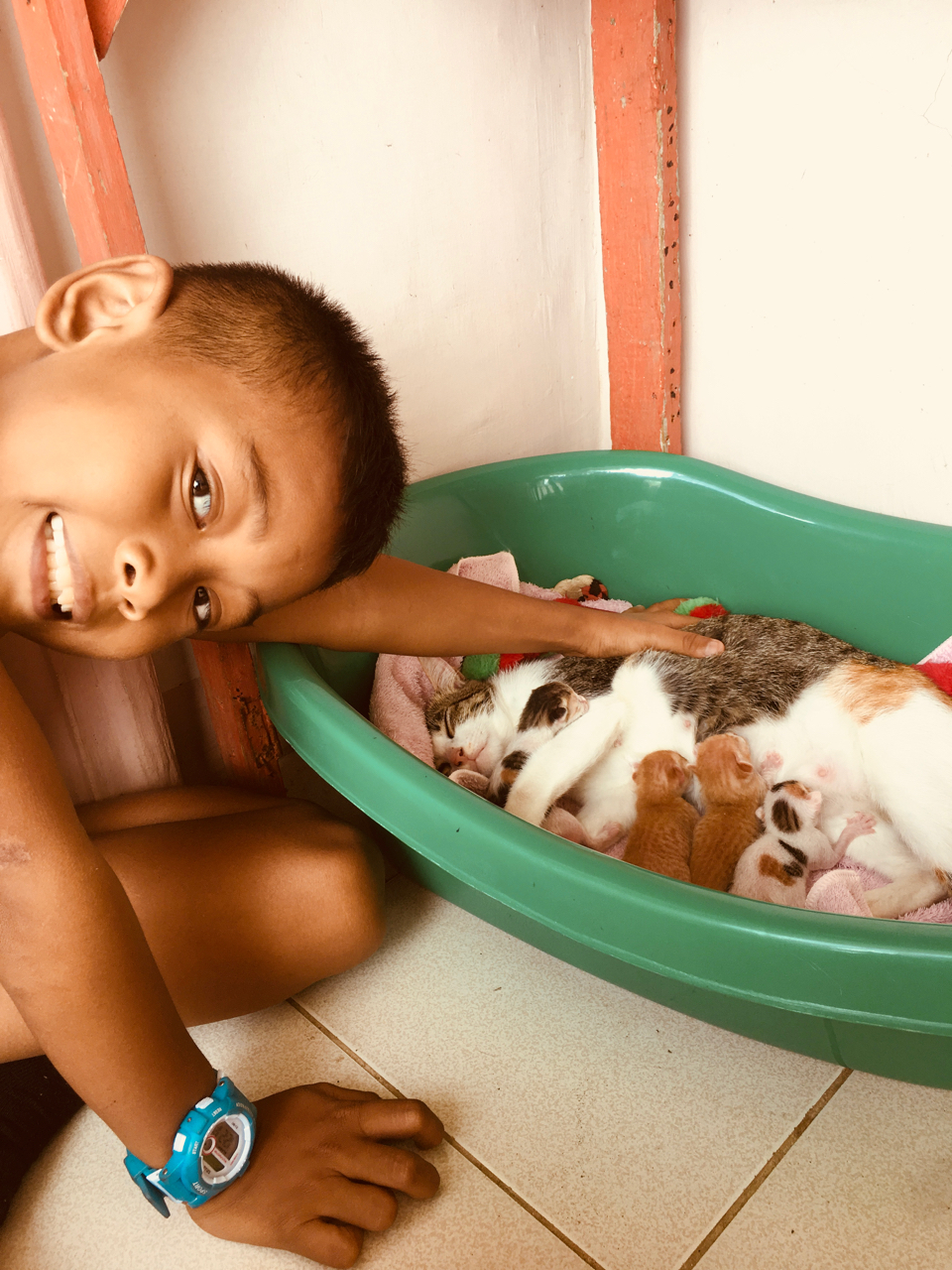 Does anyone remember back in July last year when I found a tiny stray cat by the side of the road? Well that little cat became a mother yesterday and our little family has grown four more. Let me tell you about Maxine’s babies.