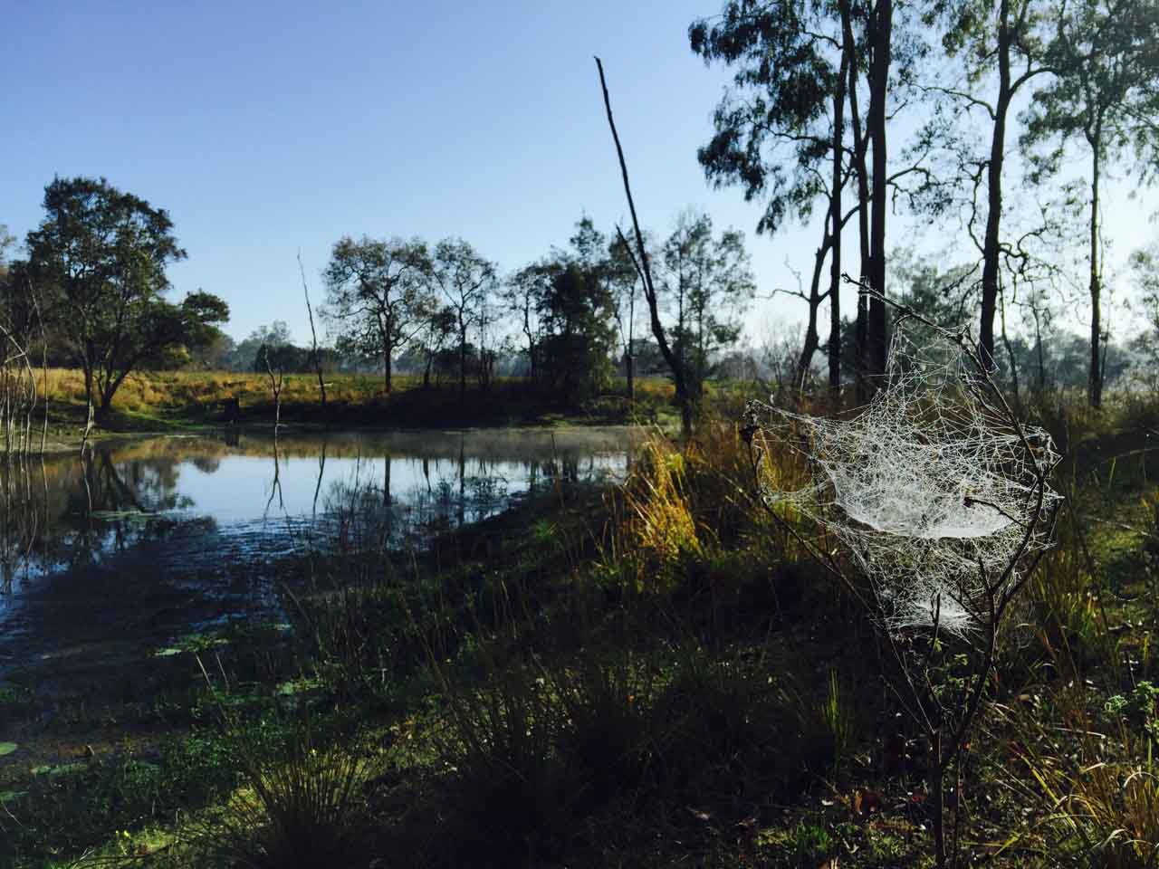 Driving all night along the long, quiet roads of Far-north Queensland, I pulled over in the early morning for a quick rest-stop. Imagine my delight at the dew-filled cobwebs and mist lingering over the dams.