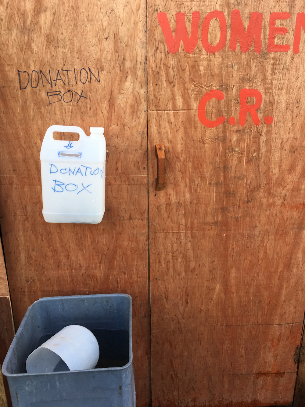 women’s “comfort” roomwe squat over grilled river(brown boxed “privacy”)