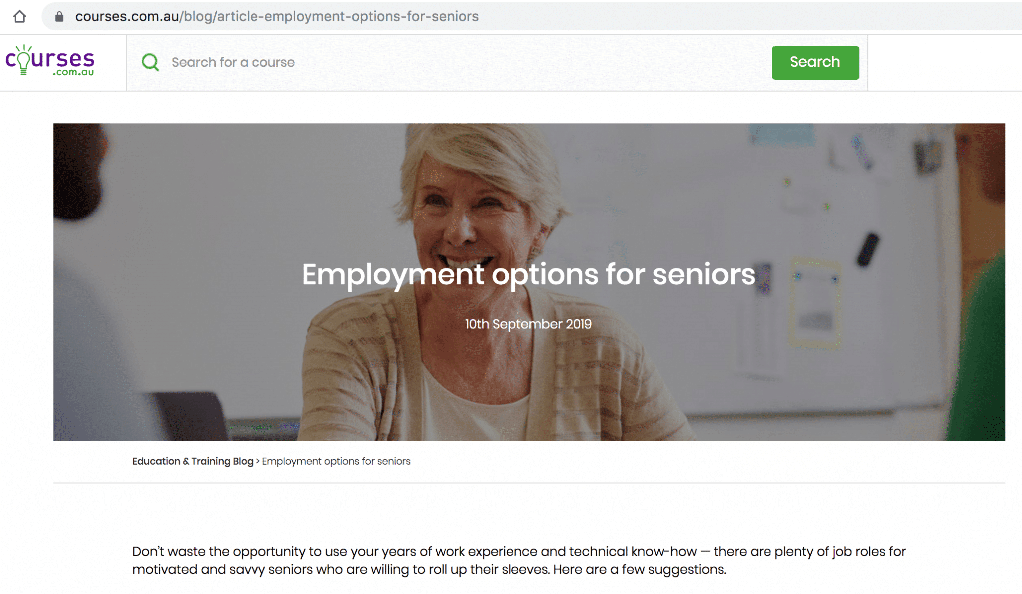 Ghostwriting assignment written to spec, promoting nationally recognised training courses to seniors aged 65+.