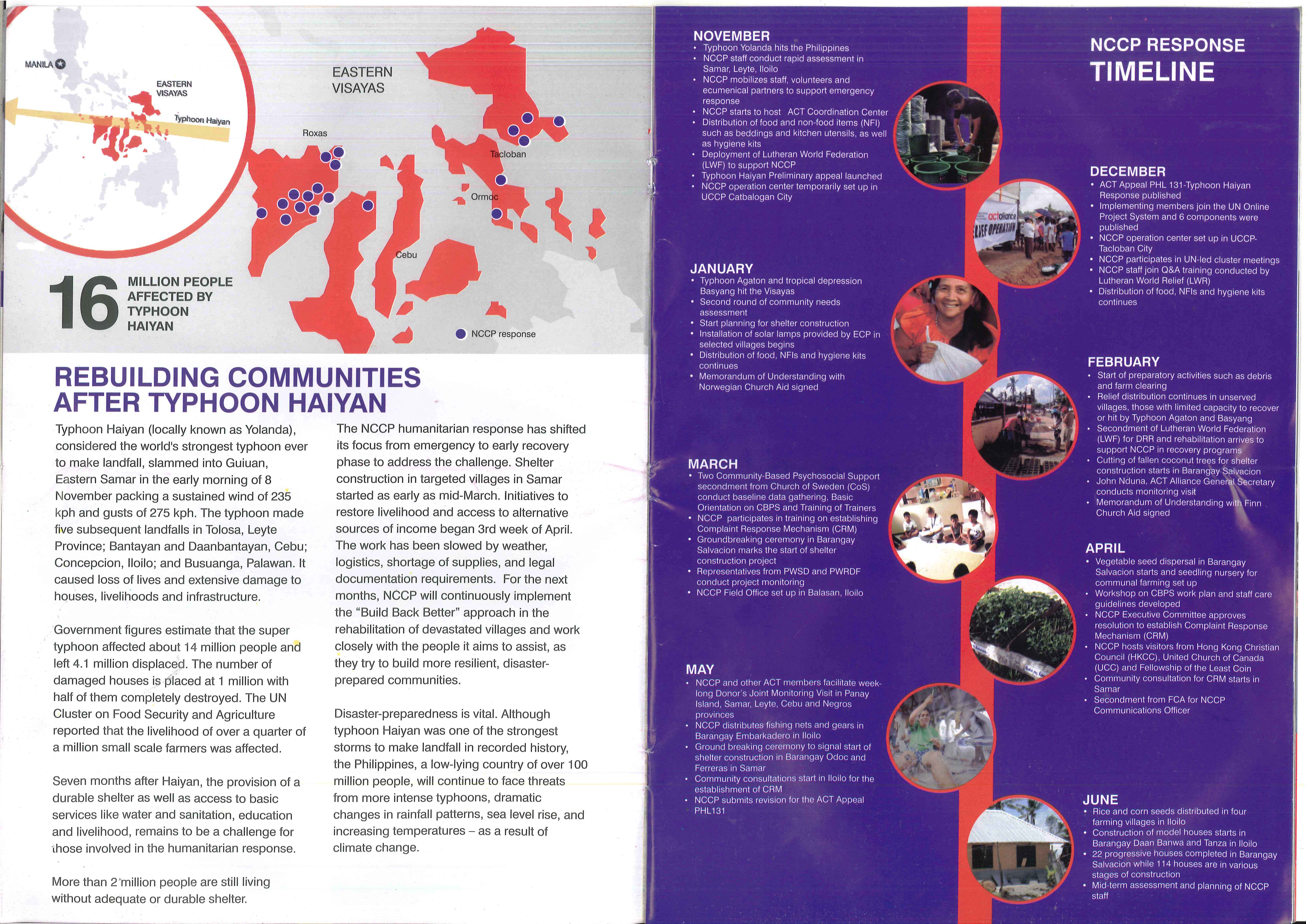ACT Alliance and the National Council of Churches in the Philippines (NCCP) have been working on the ground delivering aid to human beings displaced by Typhoon Yolanda.