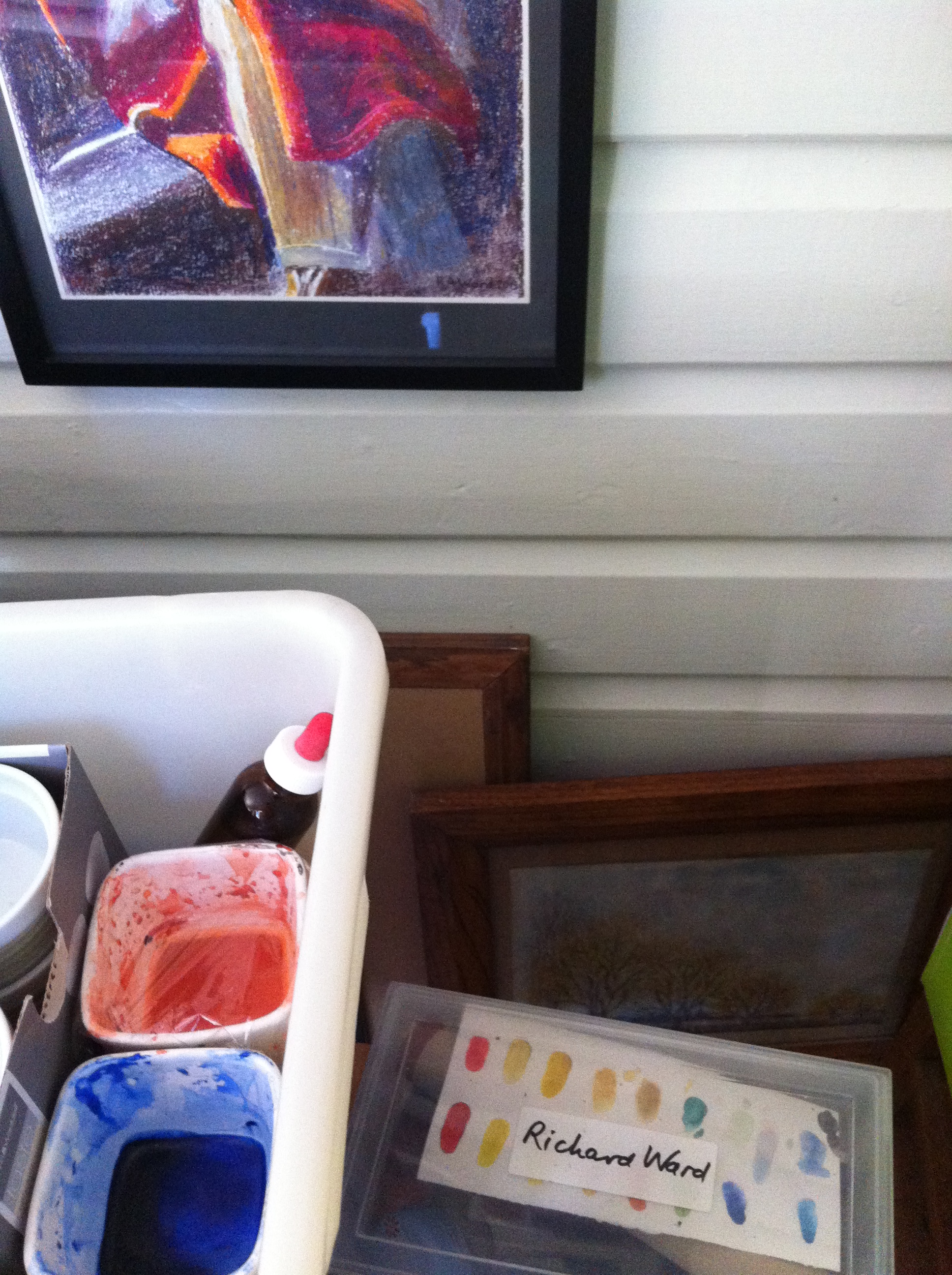 Uncle Richard is primarily a musician but he is also an accomplished painter, pipe organist, bell toller and published author. I had no idea of the range of his talents until one afternoon last year, alone in his eclectic house, I began to notice walls of beautiful water colours, crayon drawings and mosaics. Later he would show me through his art works including the materials he uses to teach water colour classes at a local gallery.