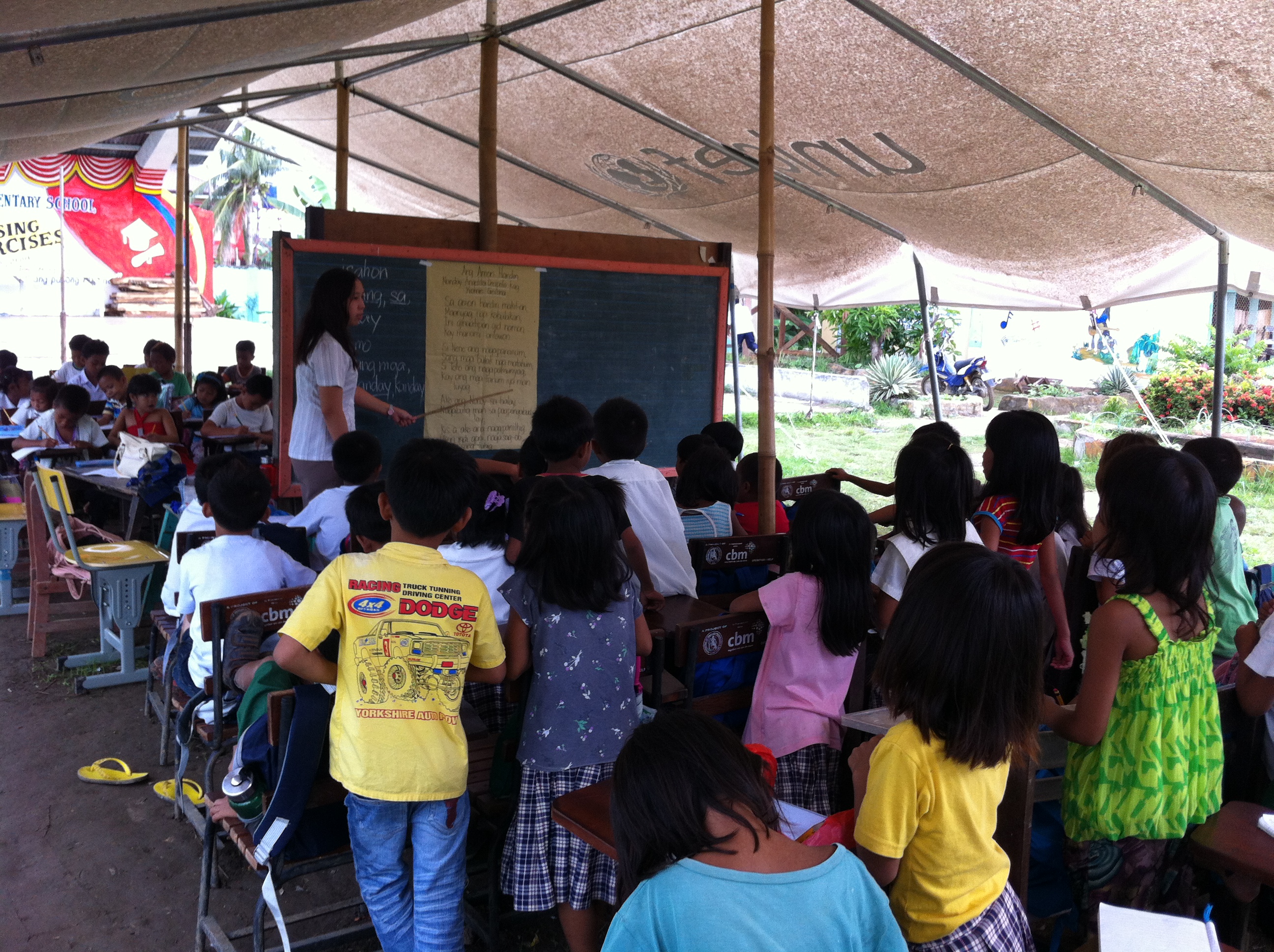 Returning now a year after the typhoon, I noticed a sign (see gallery below) displaying a notice that World Vision are rebuilding the school.