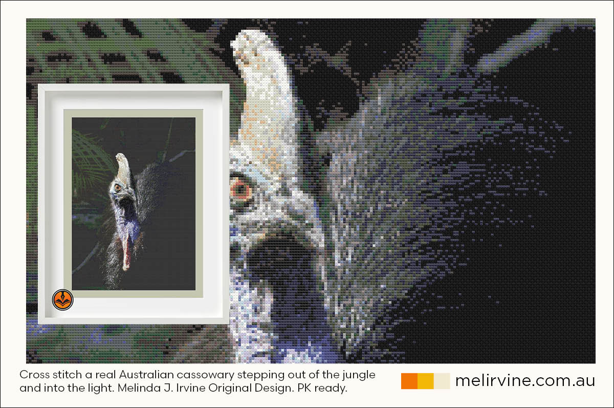Cassowary cross stitch pattern was inspired by a Southern Cassowary I photographed near Mission Beach (Far-north Queensland, Australia) in 2012.