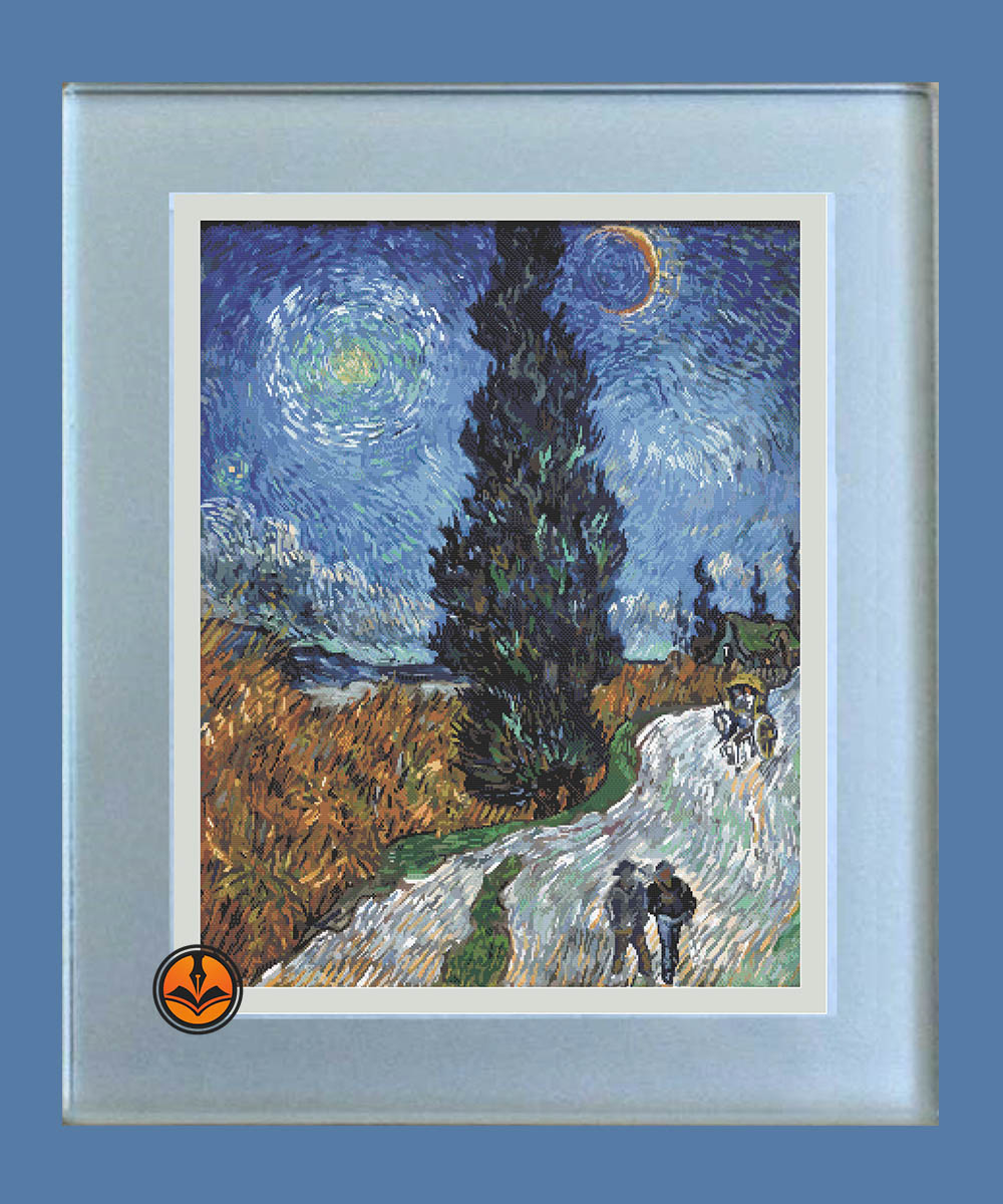 Country Road at Night cross stitch pattern is a replica of Van Gogh’s 1890 oil painting Country Road in Provence by Night. It was the last painting he completed while at the Saint-Rémy Asylum and was painted entirely from imagination.
