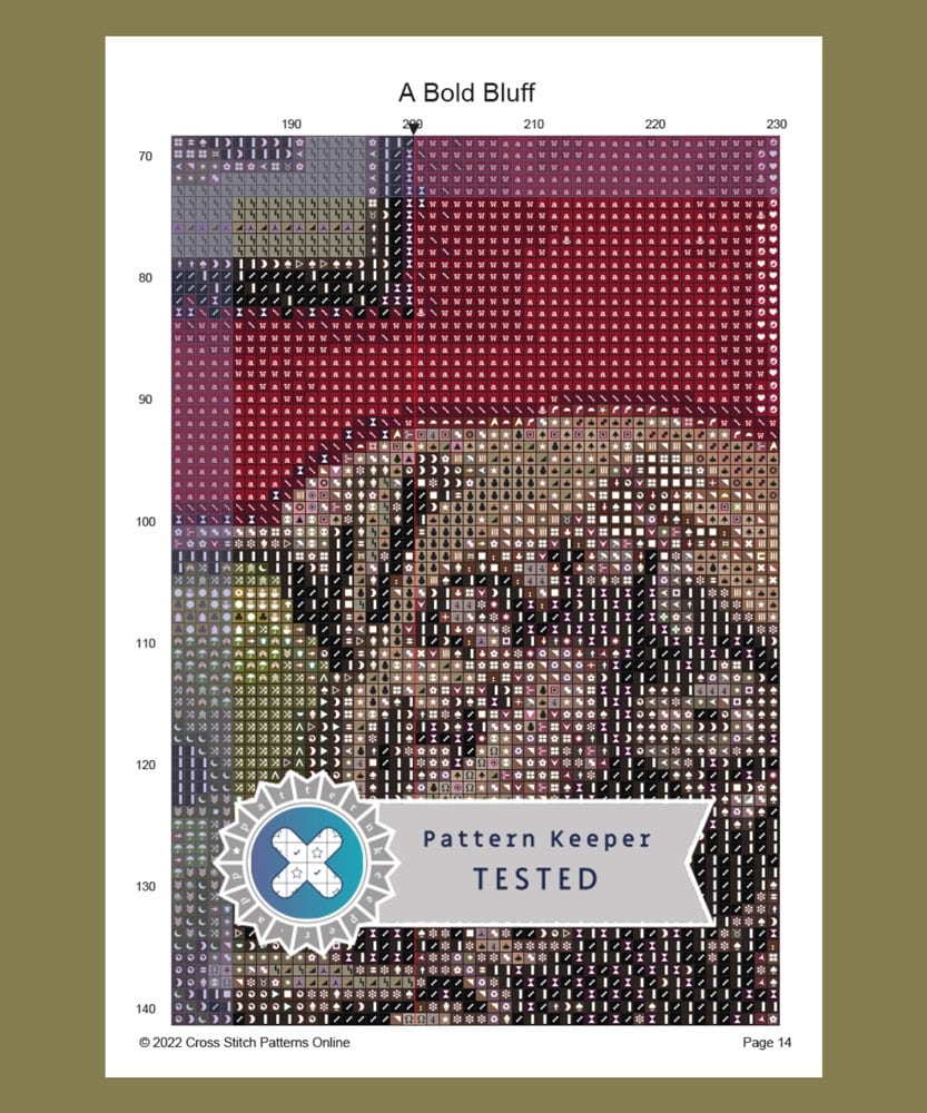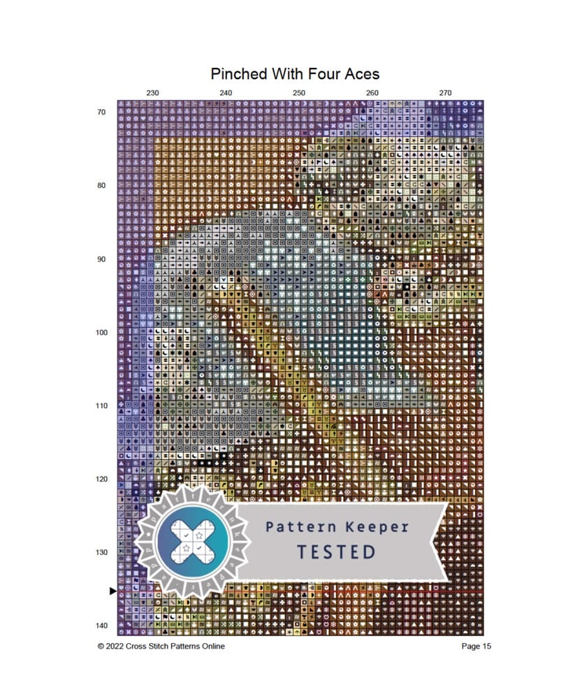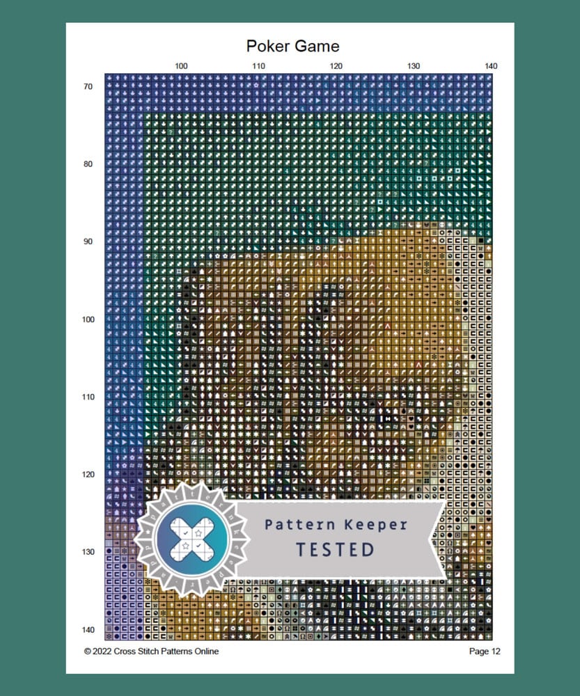 When you purchase Dogs Playing Poker Cross Stitch Series you will receive six matching charts, each in a similar size and kitsch colour theme. A separate chart, specially formatted for the Pattern Keeper app, is included for each design.
