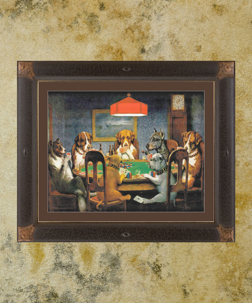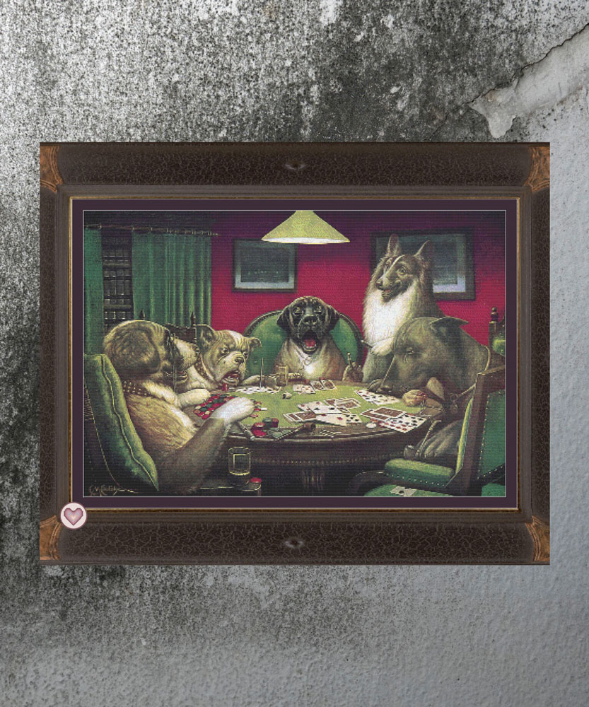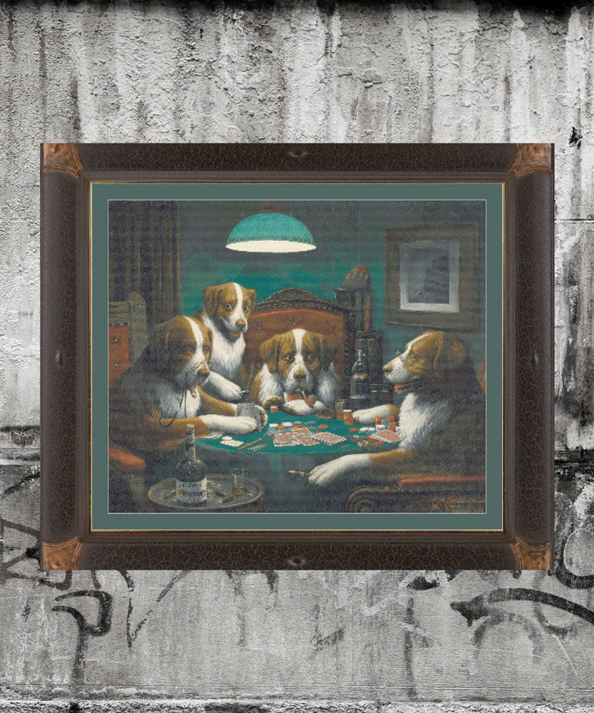 - Poker Game — 400 x 332 grid (72.6 x 60.2cm) 1oo DMC colours —Four Saint Bernard dogs have a round of poker, along with cigars and fine whiskey.