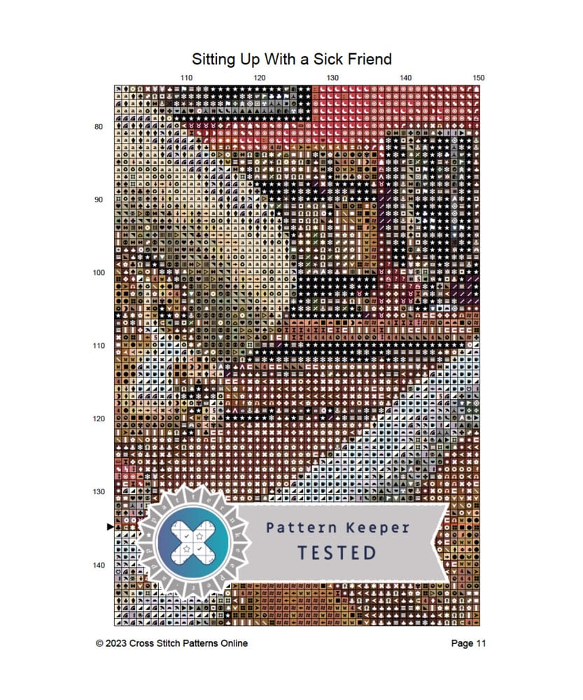 - Sitting Up With a Sick Friend — 400 x 269 grid (72.6 x 56.1cm) 148 DMC colours — the dogs are caught out at cards by their wives, ouch!