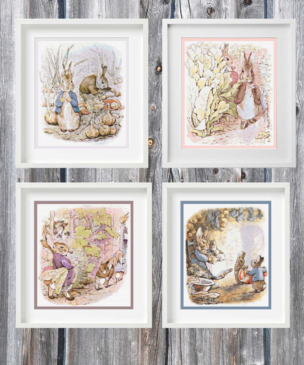 When you purchase Little Benjamin Bunny Cross Stitch Series you will receive four matching charts, each in a compatible size and colour theme. Your download pack includes: