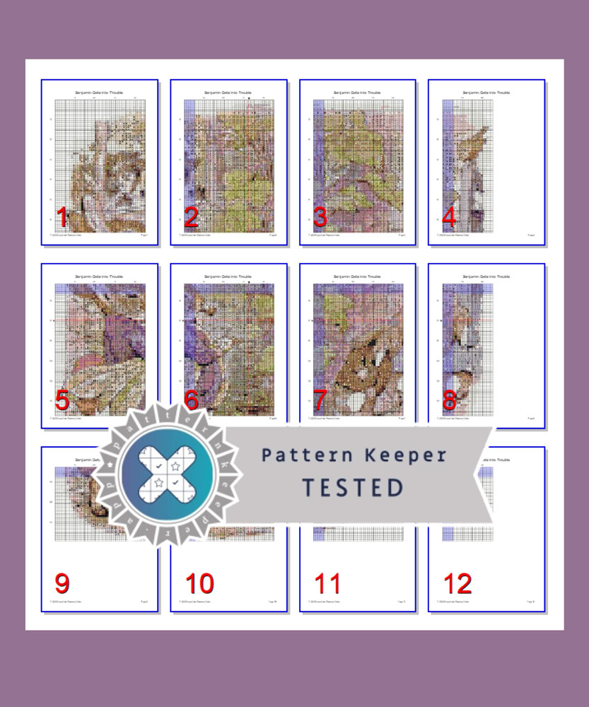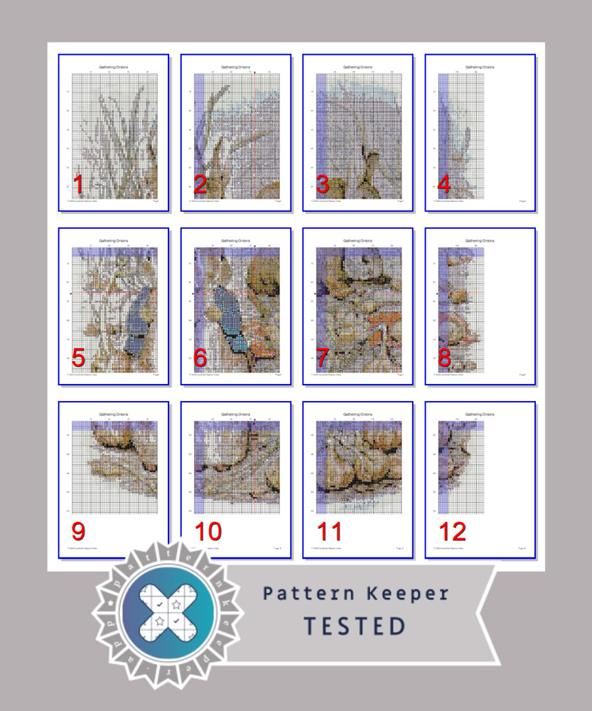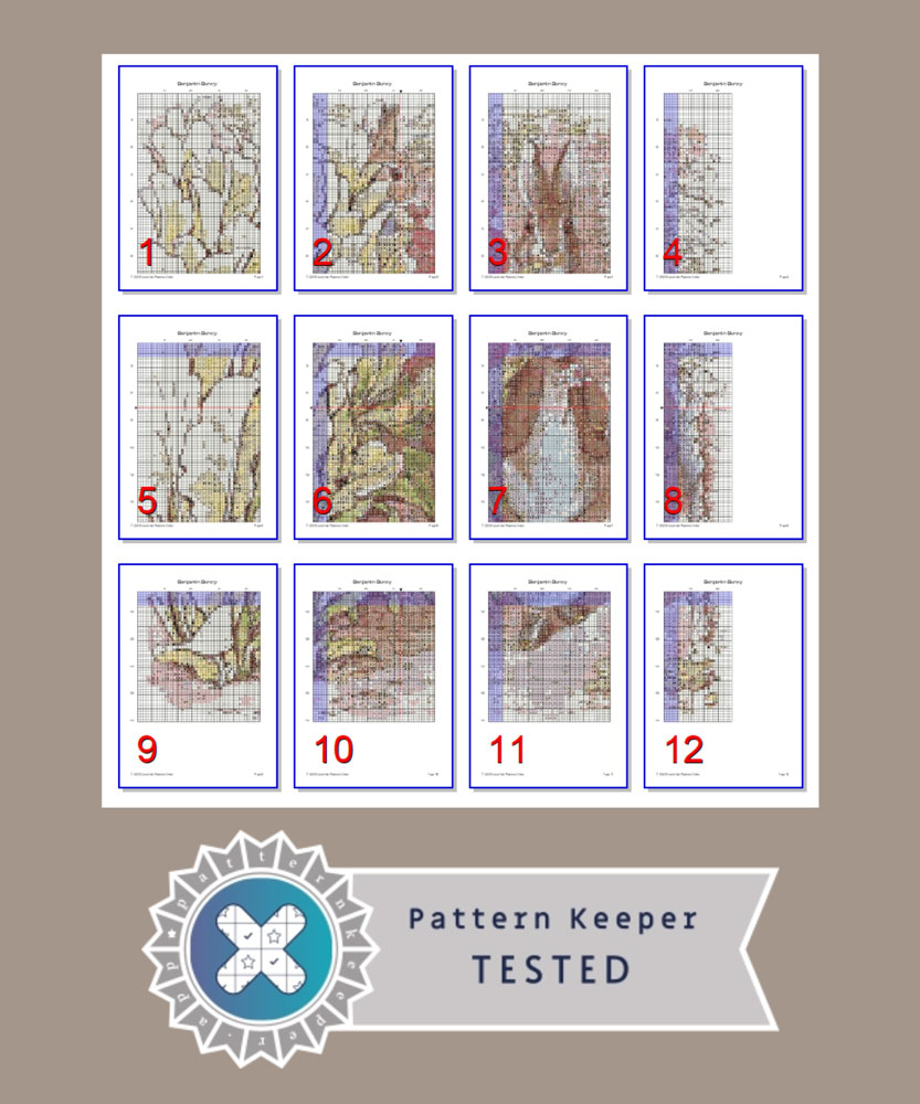 Each finished cross stitch measures (approximately) 26cm x 30cm when stitched on 14-count Aida cloth (see the actual dimension in the list below). The patterns work perfectly with Pattern Keeper App and there are NO backstitches.