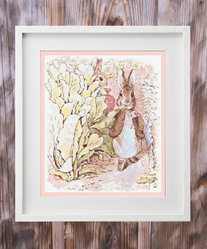 - Peter Rabbit is Forgiven 22,503 stitches (26.3 x 31.8cm) 67 DMC colours — Peter arrives home to an overjoyed Mrs Rabbit, who immediately forgives him (and then takes charge of the onions).