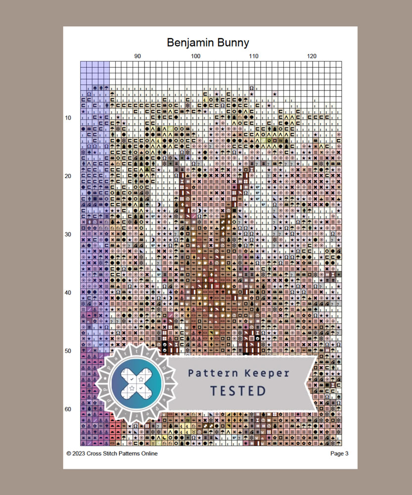 - Benjamin Bunny 22,186 stitches (26.3 x 30.8cm) 67 DMC colours — naughty Benjamin leads a nervous Peter out of the onion patch, munching lettuce and bragging about his recent escapades.