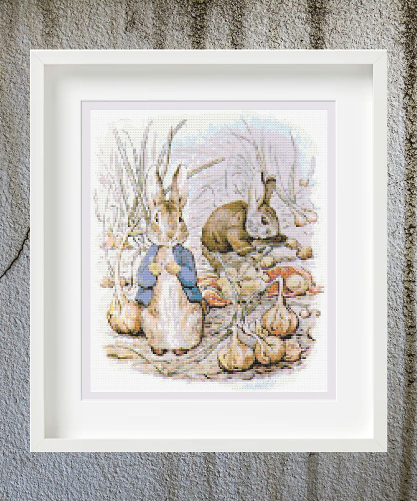 - Gathering Onions 21,045 stitches (26.3 x 31.0cm) 69 DMC colours. — Benjamin Bunny and Peter Rabbit set to work on Mr McGregor’s onion patch.