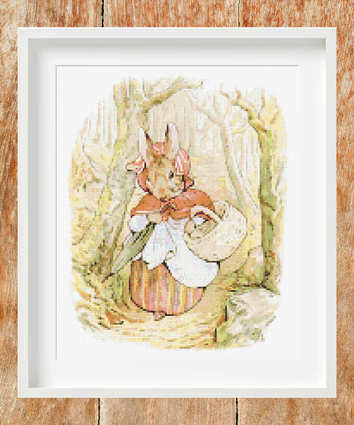 Mrs Rabbit cross stitch pattern is a replica of the 1910 Beatrix Potter drawing from her bestselling book ‘The Tale of Peter Rabbit‘.