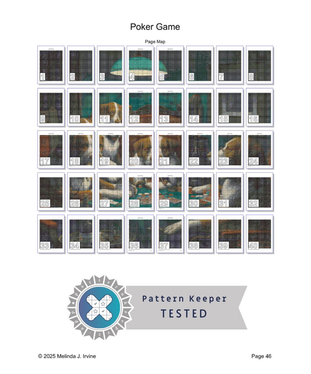 Poker Game is a large, full coverage cross stitch and the finished piece measures 72.6 x 60.2cm when stitched on 14 count Aida cloth (400 x 332 stitches). I’ve rated this project Challenging because there is a lot of confetti and thread changes. If you’re up for the challenge though, I think you’ll adore how this project retains the textures, kitsch appeal, and funny expressions on the dog’s faces.