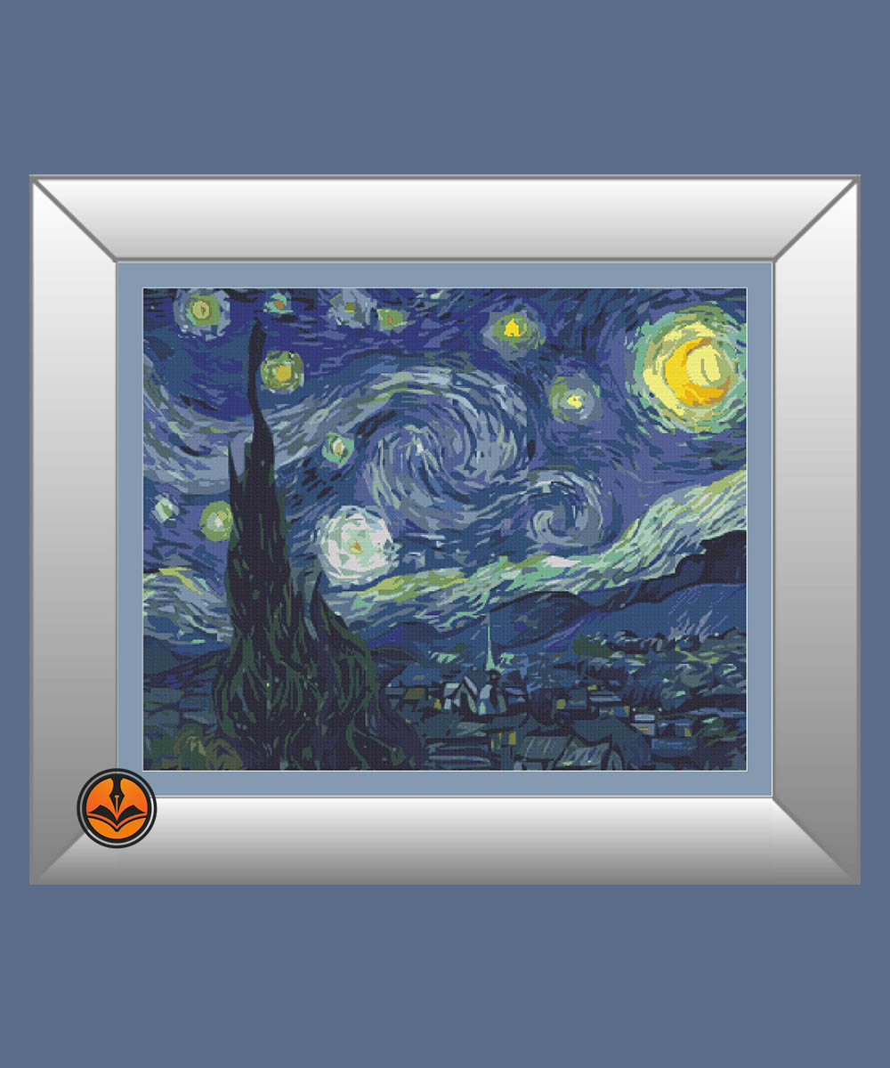 Starry Night cross stitch pattern is a replica of one of the world’s most famous oil paintings by Vincent Van Gogh. The painting is currently on display at the Museum of Modern Art (MoMA), New York City, USA.
