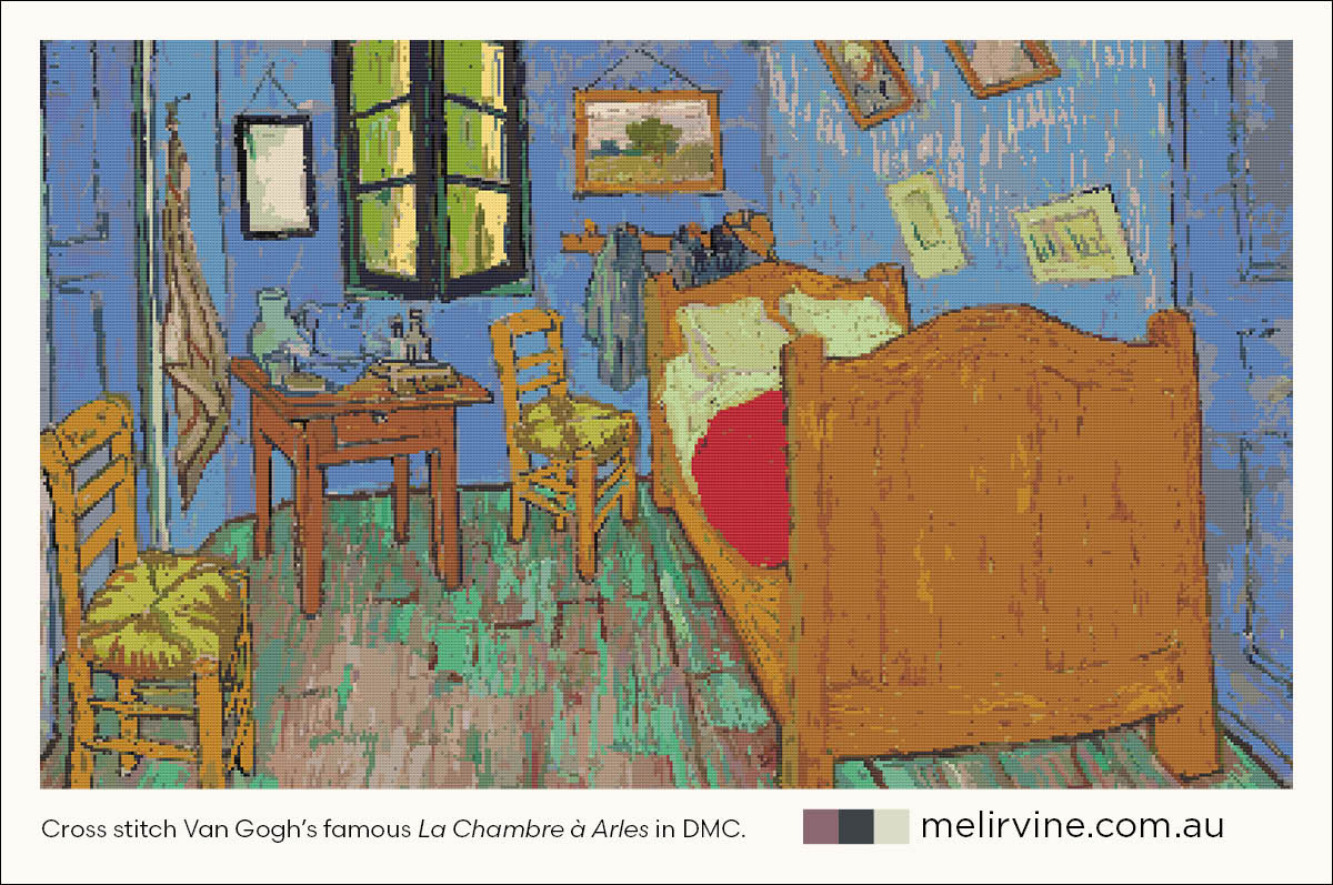 If you love this cross stitch replica of La Chambre à Arles, grab a coffee (or something sweeter) and browse my growing library of Van Gogh inspired projects. I’ve charted many of Van Gogh’s most famous artworks, maybe you’ll find your own favourite there.