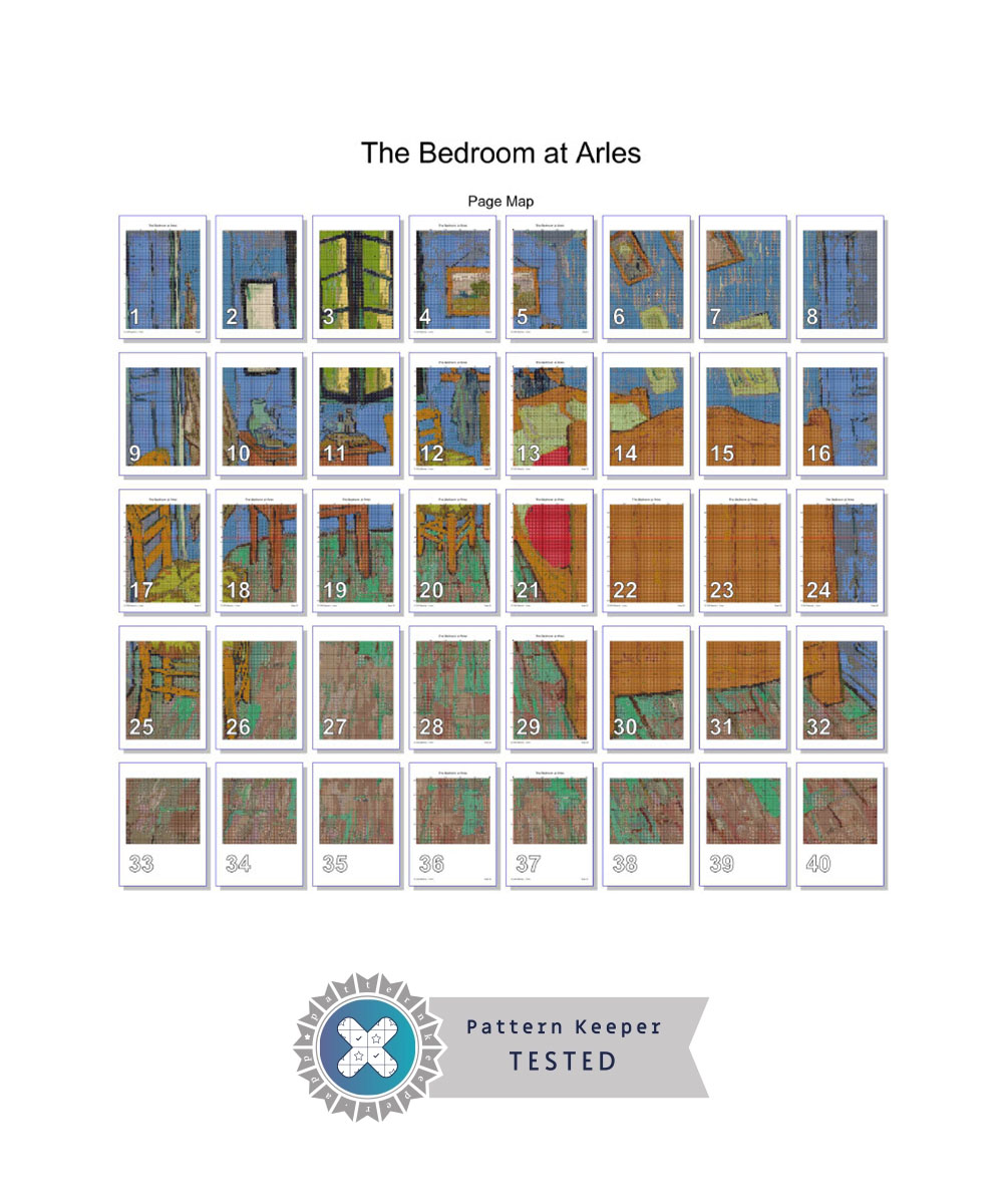 Van Gogh painted three versions of The Bedroom and my chart is based on the second in the series. Here is a little more about the painting (written by the Art Institute of Chicago), including Van Gogh’s own words:
