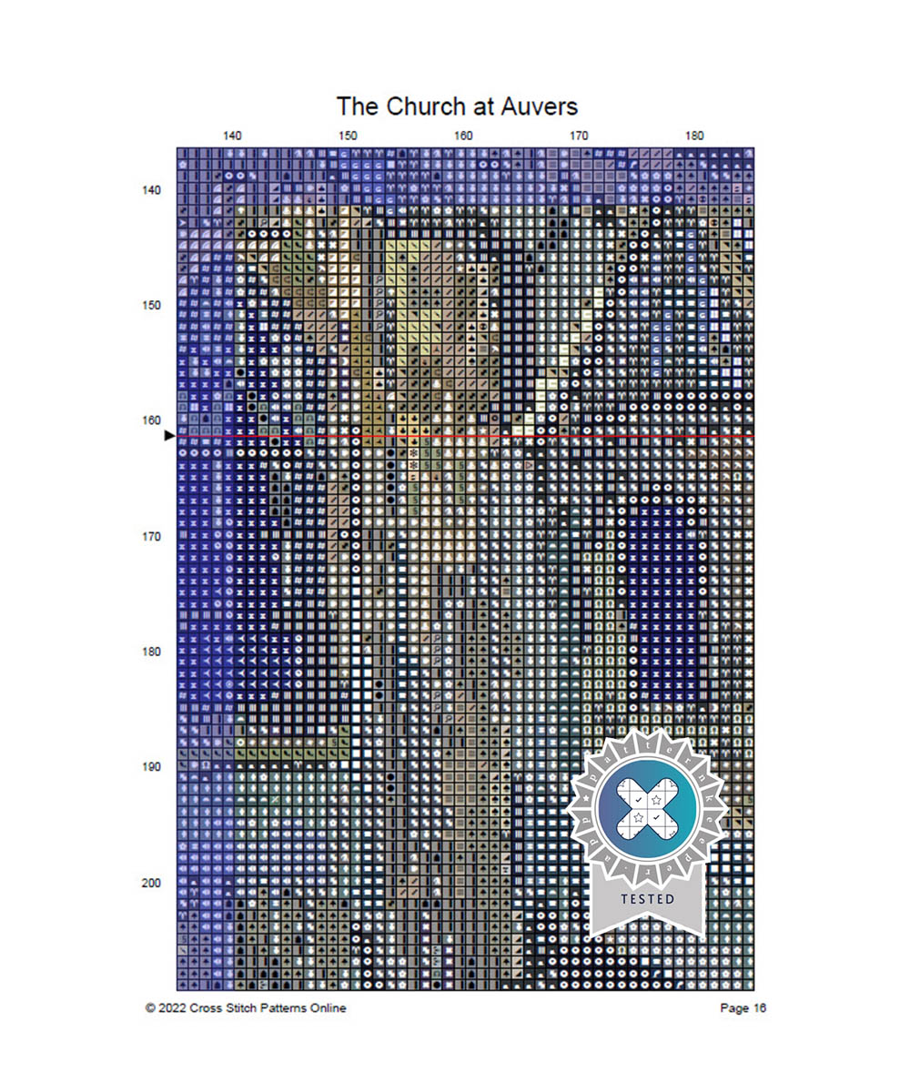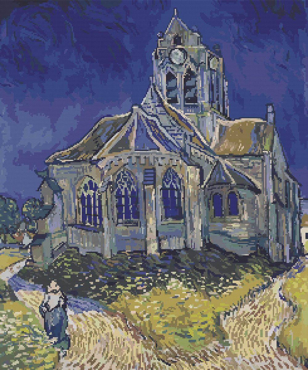 Church at Auvers cross stitch pattern was inspired by Van Gogh’s 1890 oil painting of the village church on a bright sunny day. I think you’ll love recreating the dark blue sky and thick brushstrokes that define the church’s arched windows and belltower.