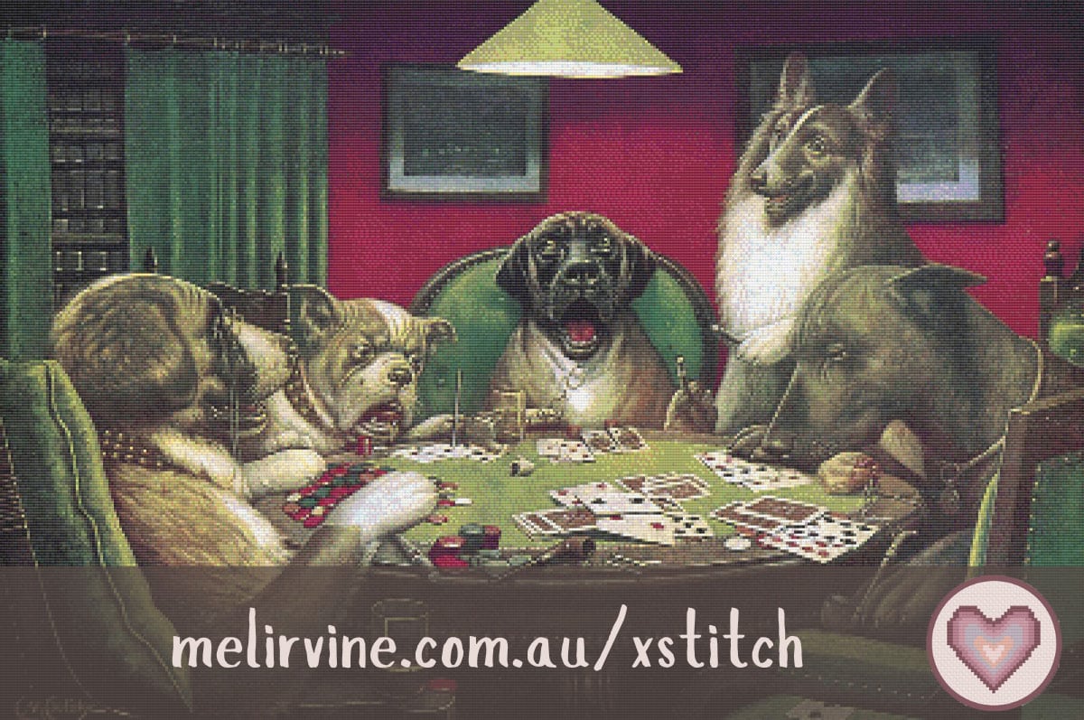 If you’re a fan of all things kitsch, you will love stitching the garish colours and matching details from the original painting including the facial expressions of the dogs, the upholstery, bookcase, poker chips and cards.