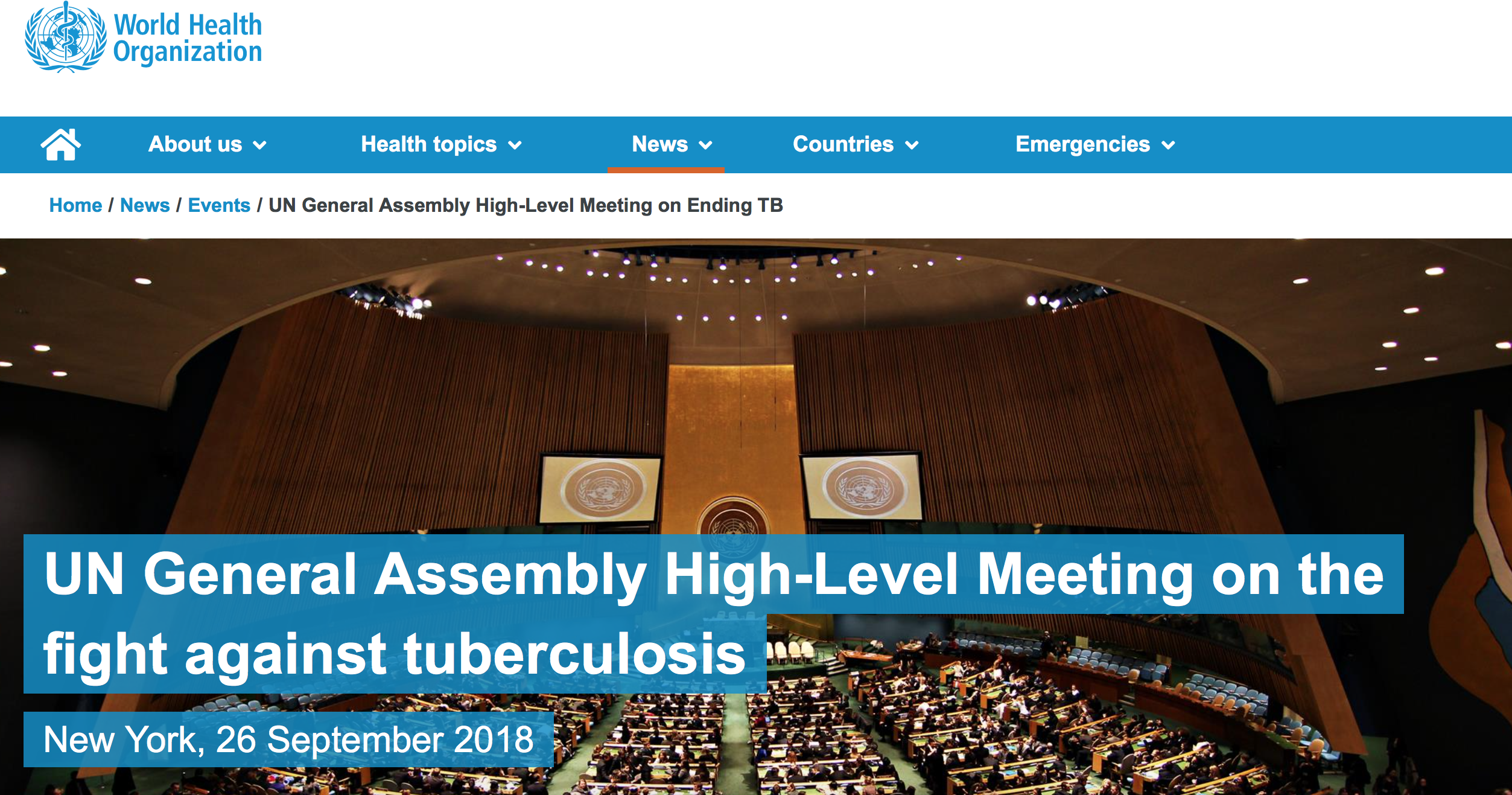 The World Health Organisation has a vision to end TB (zero deaths) by the year 2030. Later this month (on 26 September 2018) the United Nations General Assembly is holding a first-ever high-level meeting in New York on tuberculosis (TB) to accelerate efforts in ending TB and reach all affected people with prevention and care. . The theme of the meeting … “United to end tuberculosis: an urgent global response to a global epidemic“.