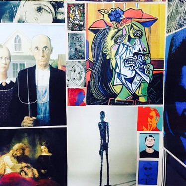 Swept indoors due to monsoon season and the art wall is appreciated more and more. While the rain is belting down and Jerry is watching another animated movie, the walls are get closer and closer in our little room, but the cut pictures of amazing art bring me comfort, companionship and inspiration. They a source of education for Jerry and his little friends, who giggle at bare bottoms or laugh hard at Picasso’s ‘funny looking lady’.